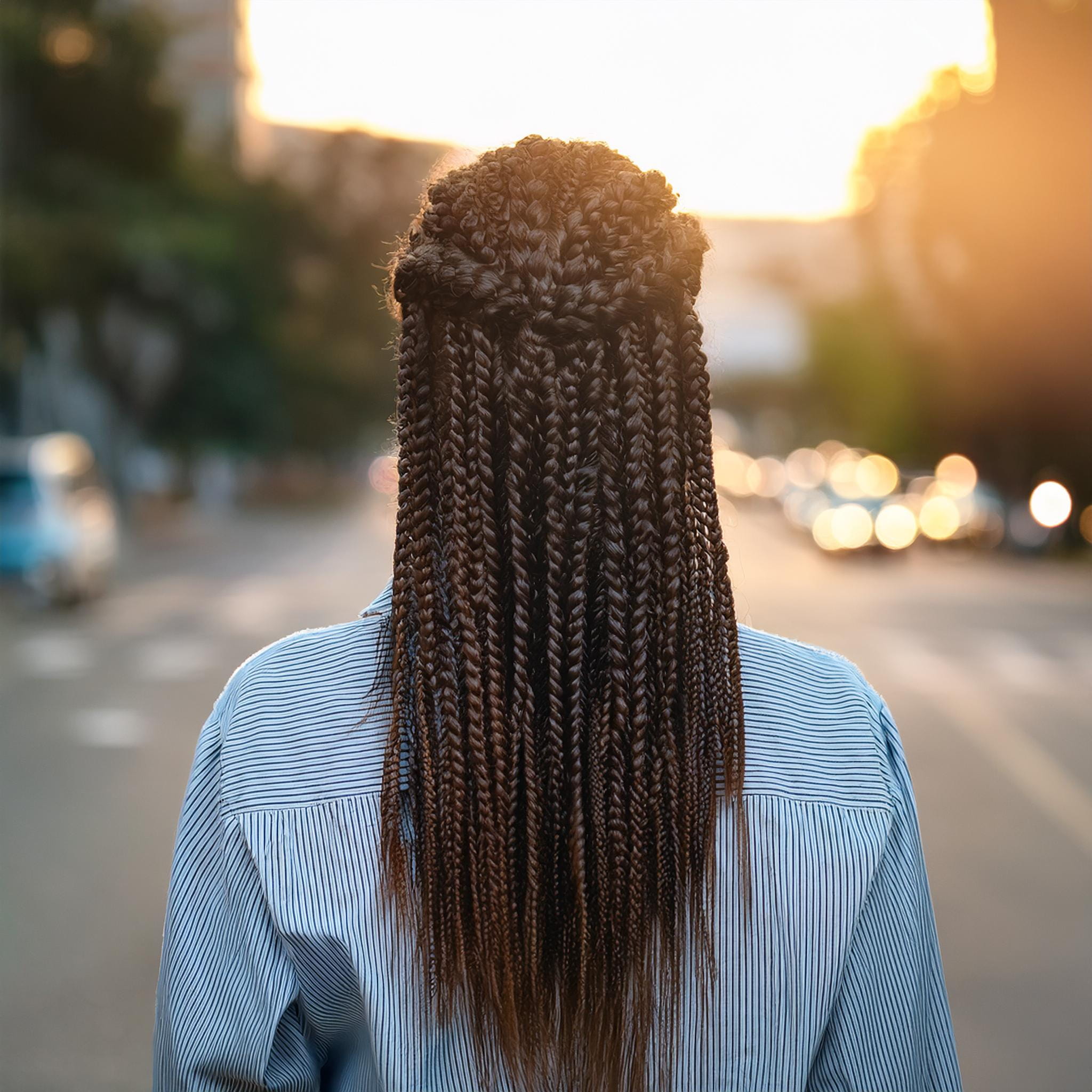 Box braids are one of the most popular protective hairstyles in Chicago. This style involves sectioning the hair into square-shaped parts and braiding extensions for length and fullness.